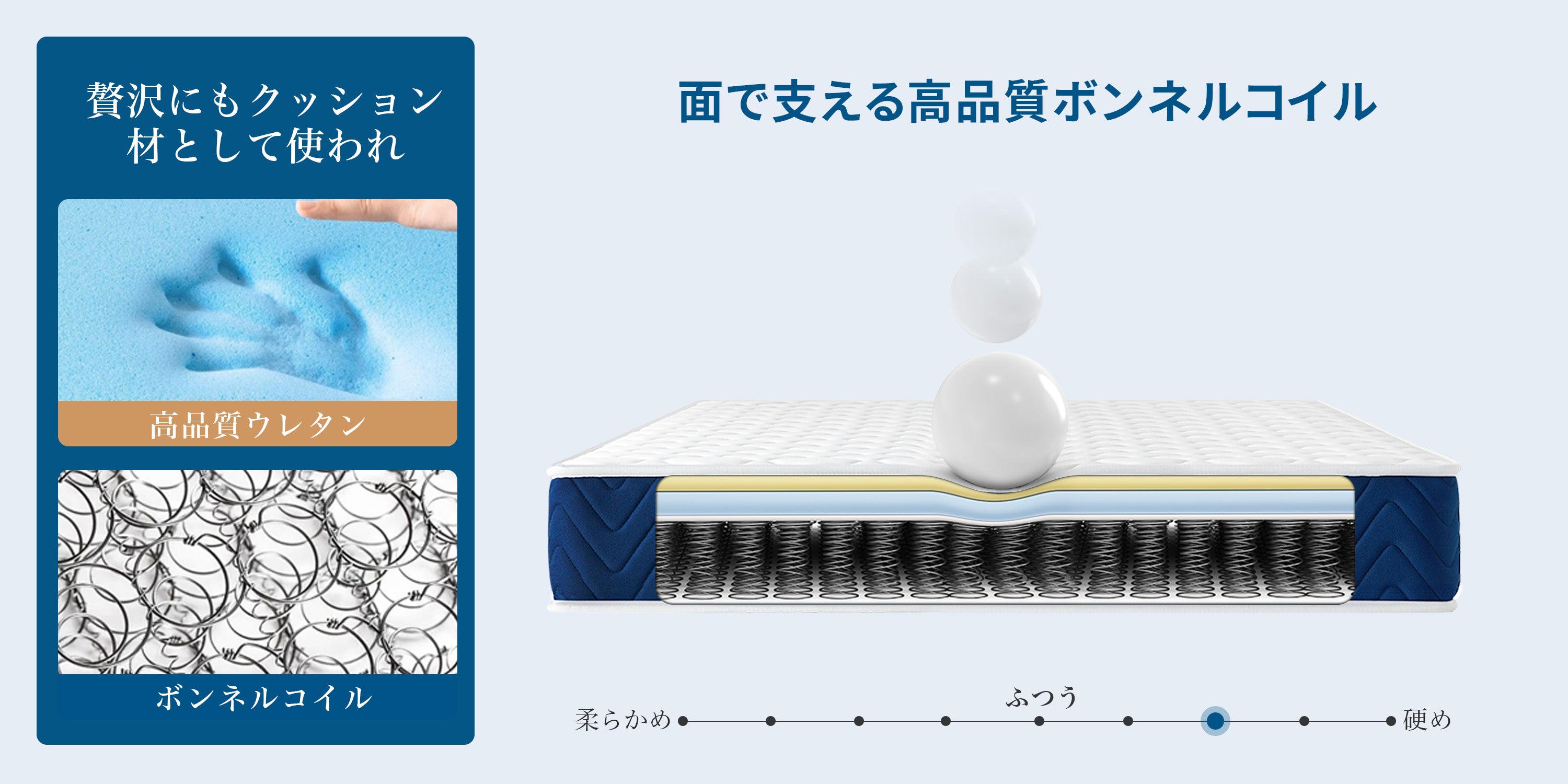 Inofia マットレス スプリング ボンネルコイル 極厚16cm やや硬め 高密度コイル 高反発 抗菌防臭加工