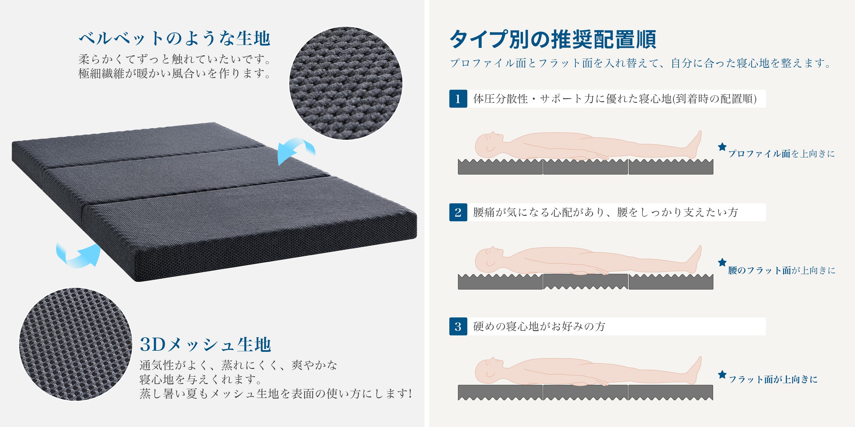 Inofia マットレス 三つ折 極厚10cm 折りたたみマットレス 凸凹加工 高反発 敷布団 抗菌防臭加工 洗濯可能な側地