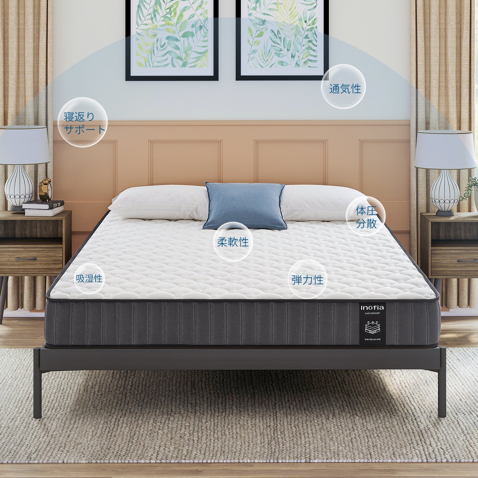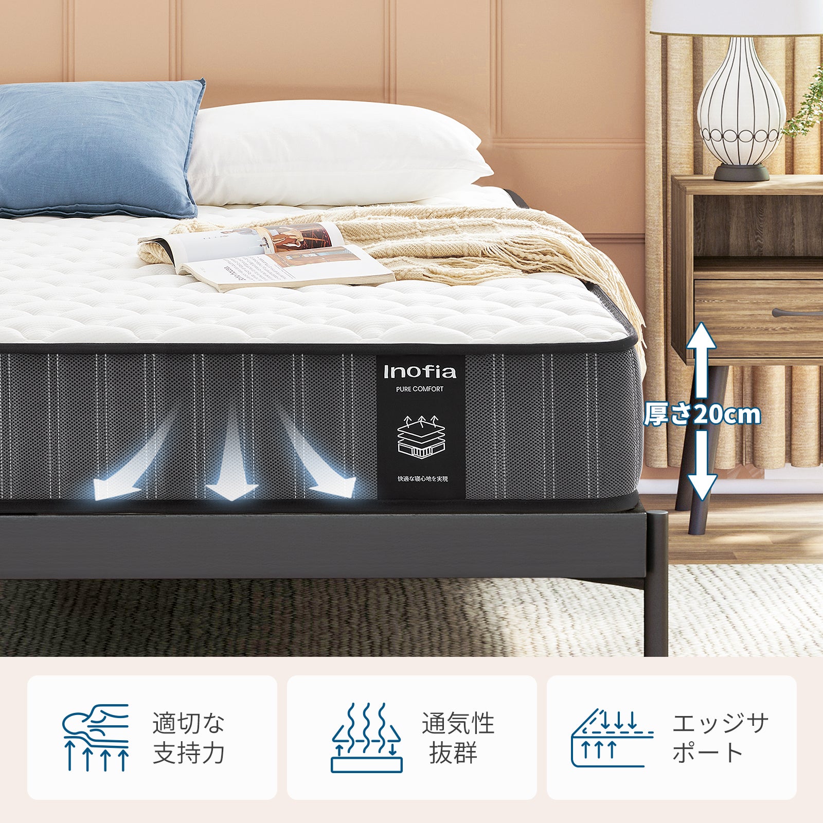 Inofia マットレス 高反発 極厚20cm ポケットコイル やや硬め 体圧分散 3Dメッシュ側面 通気性