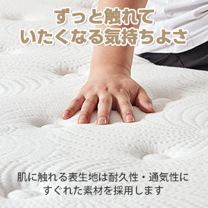 安心で上質な素材とデザイン:マットレスは安全でユニークなデザインと素材を選んでおり、肌と接触して悪い化学反応が発生しません。「外側の2層構造のウレタントッパー」はキルティングしたものを張り込んでおりふんわり、サラッとした肌触りです。「ゴムフリー綿Xオーガニックコットン」で高級なマットレスの材料としてよく使われます。人体に柔らかくて、通気性と保温性がよいです。さらにポケットコイルは並行配列で体をしっかりサポートしてくれます。ハイテクと環境保護のマットレスは体へのフィット感を保証します。